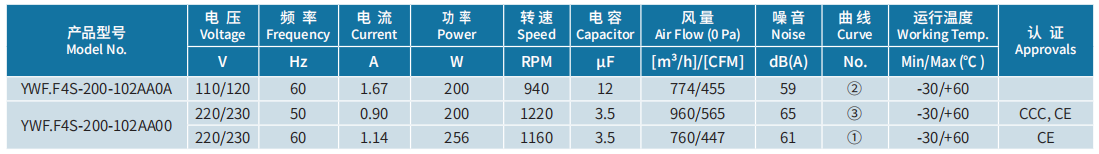 產(chǎn)品型號 YWF.F4S-200-102AA0A