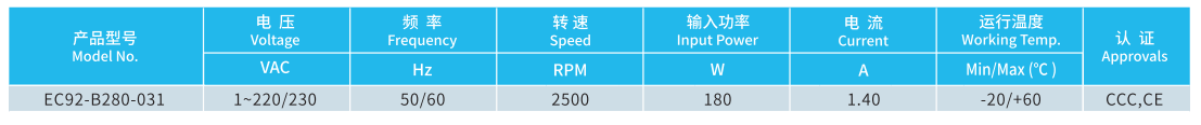 產(chǎn)品型號 EC92-B280-031