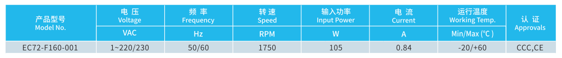 產(chǎn)品型號(hào) EC72-F160-001