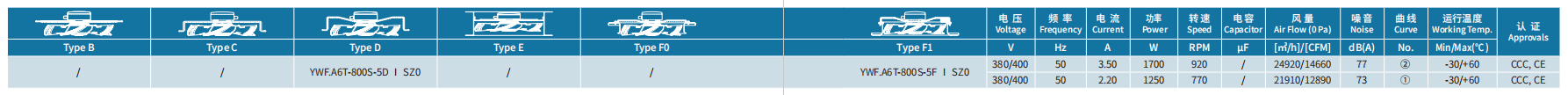 產(chǎn)品型號(hào) YWF.A6T-800S-5DISZ0