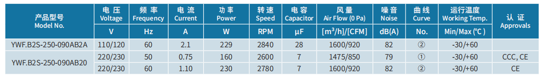 產(chǎn)品型號(hào) YWF.B2S-250-090AB20