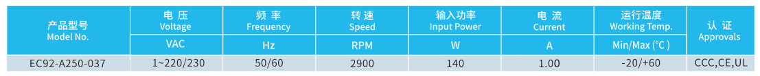產(chǎn)品型號(hào) EC92-A250-037