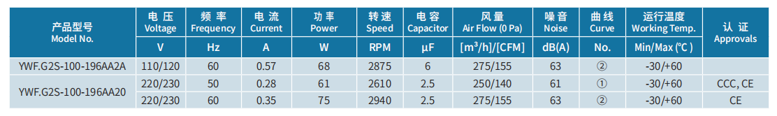 產(chǎn)品型號(hào) YWF.G2S-100-196AA2A