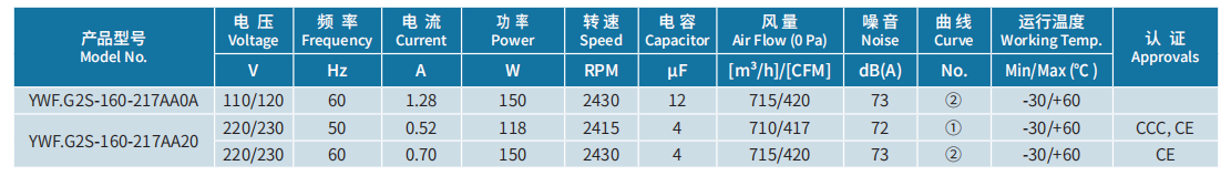 產(chǎn)品型號 YWF.G2S-160-217AA0A