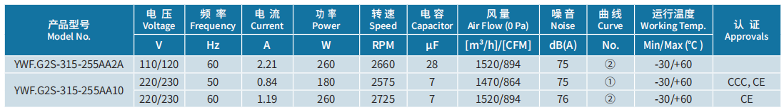產(chǎn)品型號 YWF.G2S-315-255AA2A